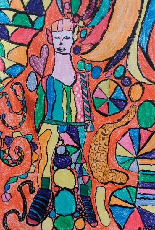 Les enfants cherchent en faisant des esquisses sur un brouillon, d’insérer leur personnage dans un monde imaginaire, coloré et décoratif .