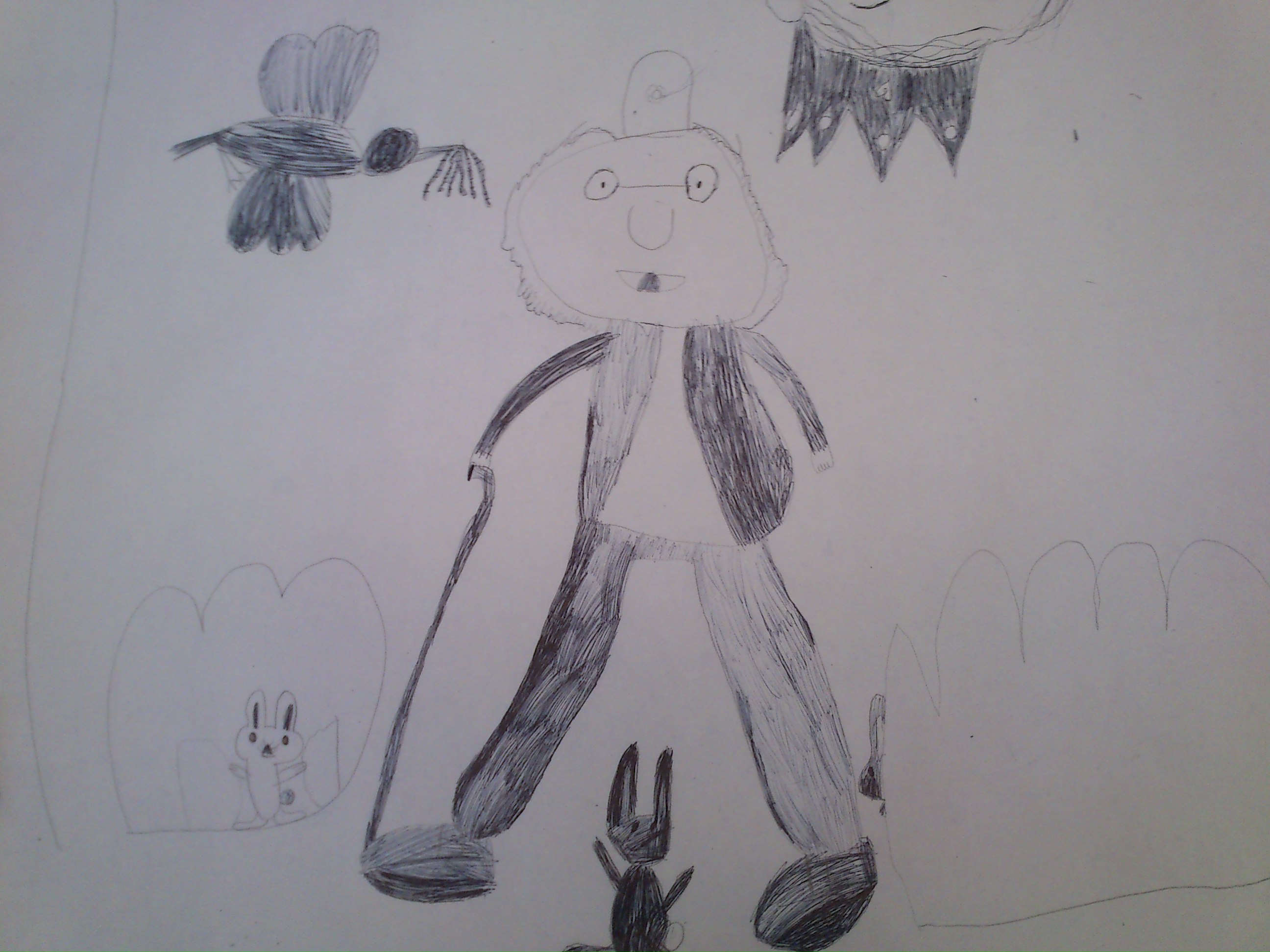 L’idée a été de réaliser une grande fresque sur du papier kraft blanc, en incitant les petits à dessiner à même le sol. Ils ont choisi de leur propre chef quels personnages imaginer. Le but était de finaliser un dessin libre, dans lequel ils ont pu exploiter au stylo à bille les hachures et les points pour créer de la continuité entre leurs différents « bonhommes ».